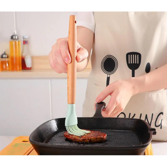 O pincel de silicone com cabo de madeira é perfeito para quem busca praticidade e precisão na cozinha. Feito com silicone de alta qualidade e um cabo de madeira, ele oferece conforto e excelente controle durante o uso. Ideal para pincelar glacias, manteiga, molhos e outros ingredientes nas suas receitas, garantindo um acabamento impecável e sem desperdício. A combinação de silicone e madeira torna este pincel resistente, fácil de limpar e ideal para o uso diário.