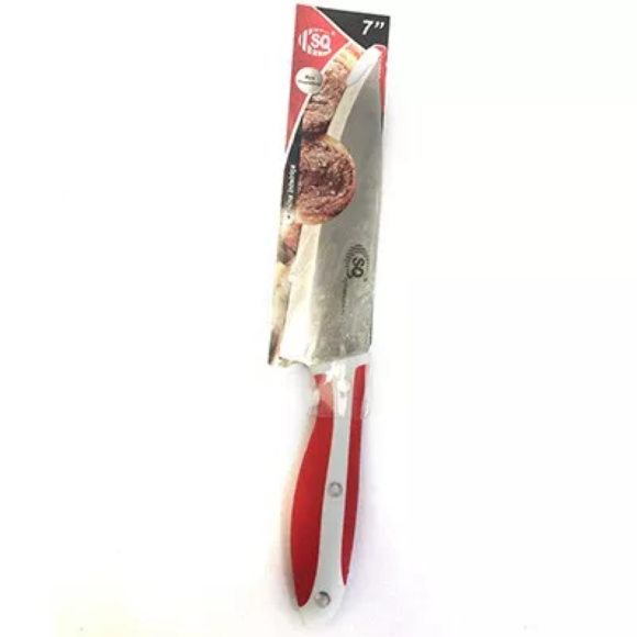 DESCRIÇÃO: FACA DE COZINHA 7" COMPOSIÇÃO: METAL COMUM E PLÁSTICO COR: BRANCO & VERMELHO VALIDADE: INDETERMINADO (PRODUTO NÃO PERECÍVEL) REFERÊNCIA: SQ-3214 CÓDIGO DE BARRAS: 7899441504467