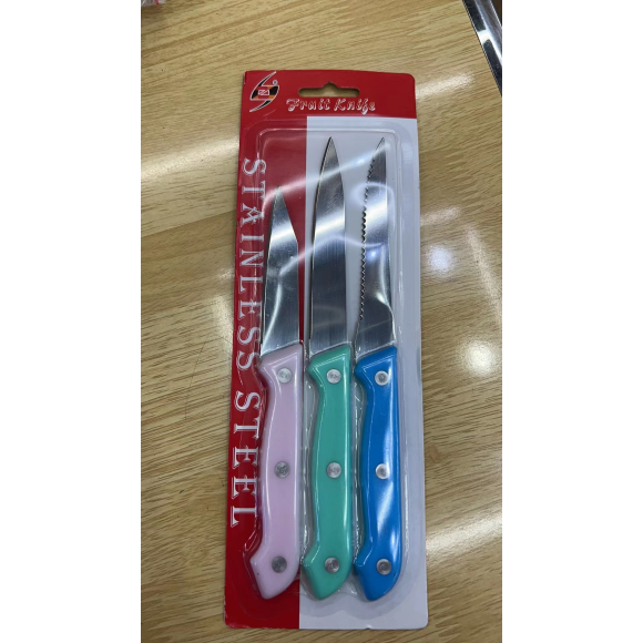 Esse kit de facas com 3 unidades é perfeito para cortes precisos e seguros na cozinha. Com lâminas afiadas e duráveis, é ideal para uso doméstico e profissional.