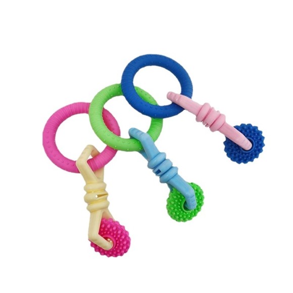 O brinquedo de borracha em formato de círculo é ideal para diversão e estímulo de brincadeiras. Resistente e leve, é perfeito para momentos de lazer.