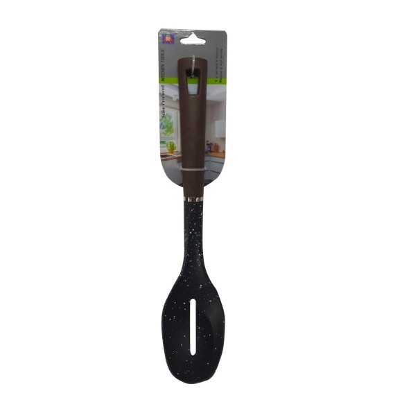 A escumadeira é uma ferramenta essencial para sua cozinha, projetada para escorrer alimentos com praticidade e segurança. Com 33,5 cm de comprimento, é feita de nylon resistente com cabo de madeira, oferecendo leveza e durabilidade. Ideal para o uso diário, ela permite manusear alimentos quentes sem danificar superfícies antiaderentes. Com seu design moderno em preto, esta escumadeira alia funcionalidade e estilo.