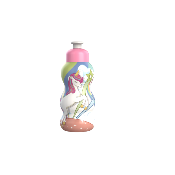 Leve e prático, este squeeze de 300ml é ideal para se manter hidratado em qualquer lugar. Seu design com estampa de unicórnio traz charme e diversão para o dia a dia, enquanto o material em plástico garante durabilidade e facilidade de limpeza. Perfeito para escola, passeios ou atividades esportivas.